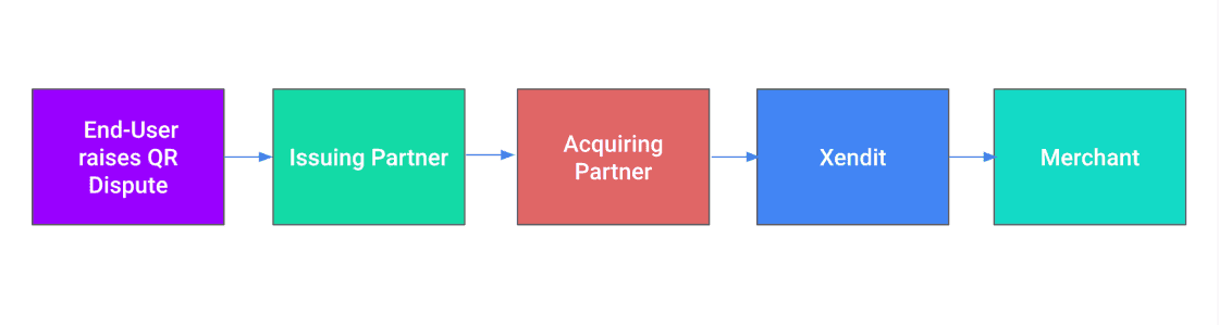 - QR Dispute Stage: H+30 from the date Acquiring Partner (ShopeePay ID or PayMaya/Maya) receives the news of Retrieval Stage, informs Xendit, until they re-submit the evidence to Issuer.