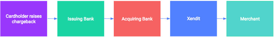 Ketika cardholder melakukan chargeback, Xendit akan mendapatkan notifikasi dari acquiring bank mengenai chargeback tersebut dan Xendit akan meneruskan informasi tersebut kepada merchant.