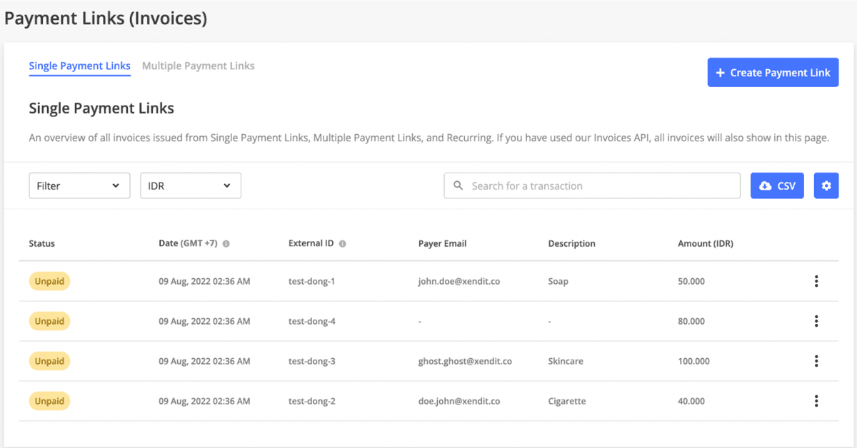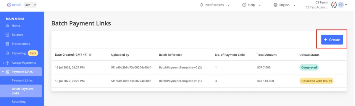 Batch Payment Link allows you to create up to 100 different payment links with a single Excel file upload. Similar to a bulk upload, Batch Payment Links can help you save time and effort when generating invoices for your customers. This feature is useful as you do not have to manually create invoices 1 by 1 for many customers.
